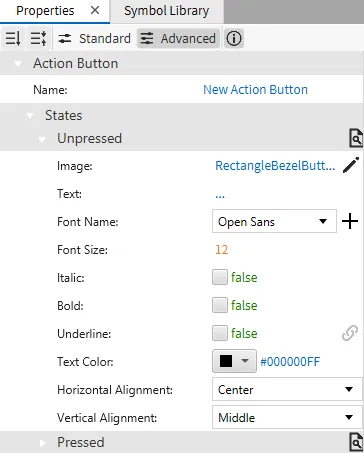 Section titled “Unpressed”When the action button is inactive, or unpressed, the following properties appear: