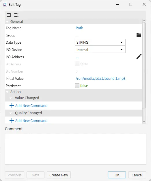Section titled “Tag Configuration”- Create the following tag: