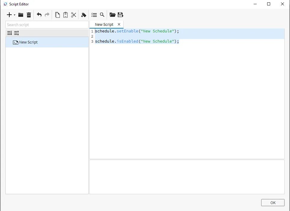 Section titled “Schedule Enable/Disable”Users can set a script by using the schedule.setEnable(String title, boolean enable) function, they can then set which schedule to disable or re-enable during runtime. boolean enable must be 0 to disable or 1 to enable.