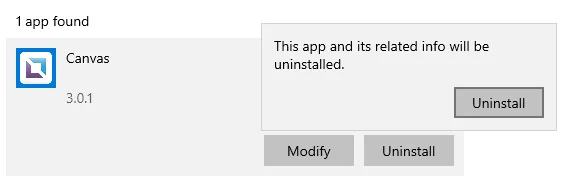 - Type "CANVAS" into the search bar, left-click Canvas, click Uninstall twice, and then follow the uninstallation procedure.