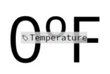- 숫자 디스플레이 오브젝트를 삽입합니다. 숫자 표시 오브젝트 속성 아래에서 Temperature 태그를 값에 바인딩하고 접미사: °F를 추가합니다.