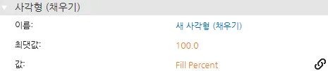 섹션 제목: “프로젝트 설정 1”- 사각형 (채우기) 오브젝트를 생성합니다. "Fill Percent" 태그를 기본 속성 탭의 값에 연결하고, "Status" 태그를 형태 탭의 채우기 매개변수에 연결합니다.