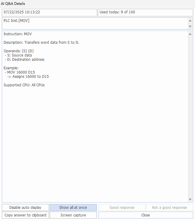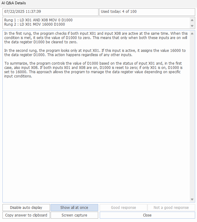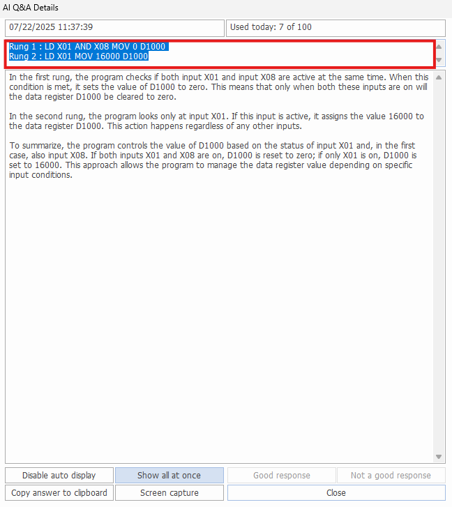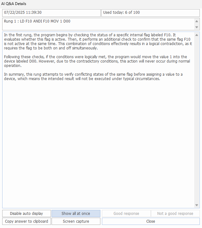Copy the analyzed ladder logic from a previous message and paste it into AI Assist.