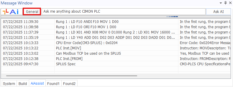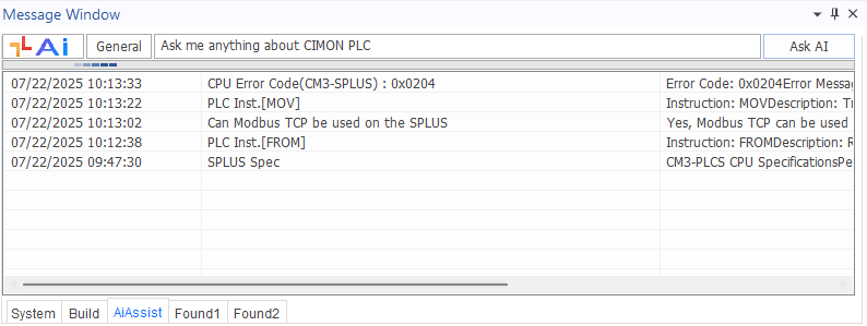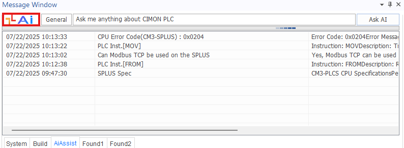 The AI Assist feature is nested in the Message Window under the AiAssist tab.