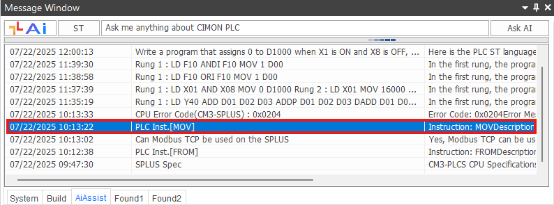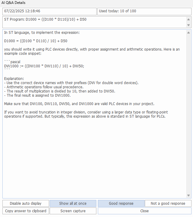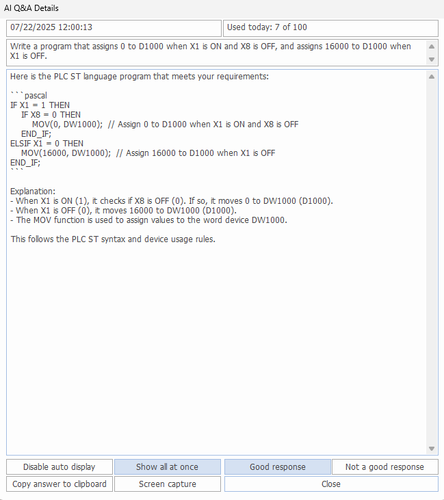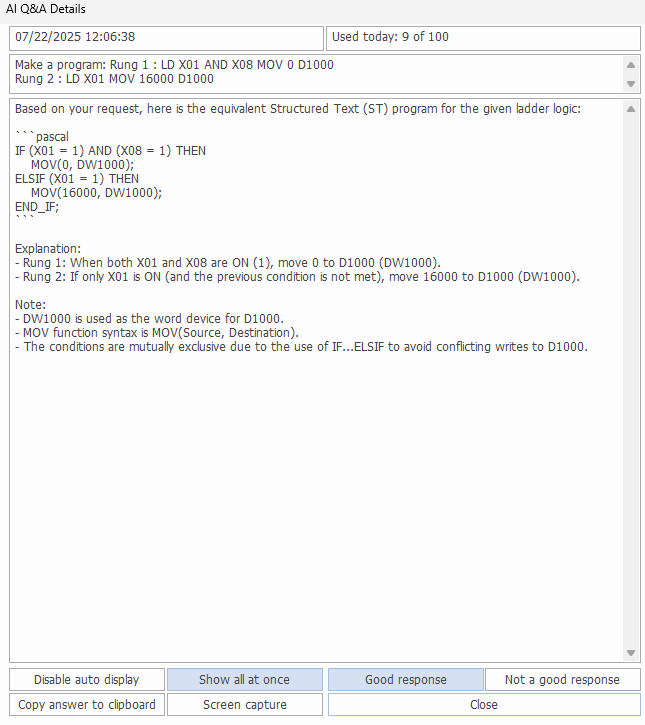 Ladder logic used by AI Assist in earlier messages can generate Structured Text code.