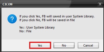 The Function Block file is saved in C:\CIMON\CICON_ENG\SYSTEM_LIBRARY\FBLIB\<FB_name>.FBL