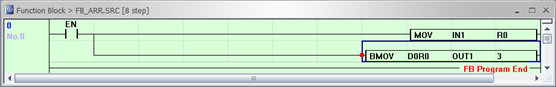 For example, if the BMOV instruction is used with the intention of transferring D10, D11, and D12 to D100, D101, and D102 in sequence, the output may not appear as expected. Instead, it could result in a mismatch due to the sequential addressing within the Function Block.