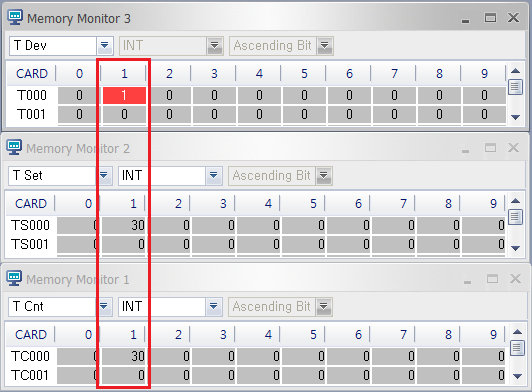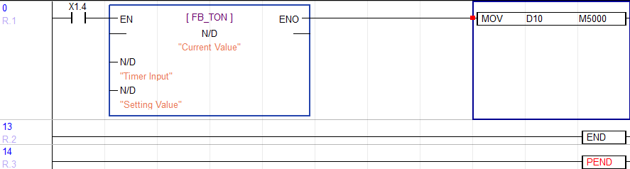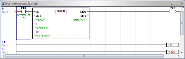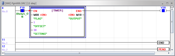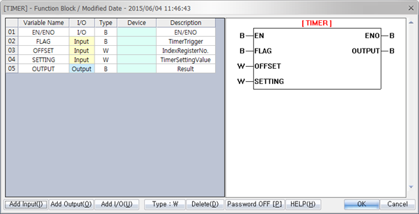 | FLAG | Input | BOOL | Operating bit for ON delay timer |