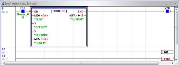- If M0.0 is turned ON and OFF five times (with the OUTPUT activating on the 5th ON event), the output M1.0 will turn ON.