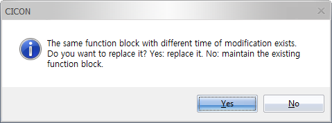 - If the timestamp differs, choose to overwrite the uploaded Function Blocks into the project file.