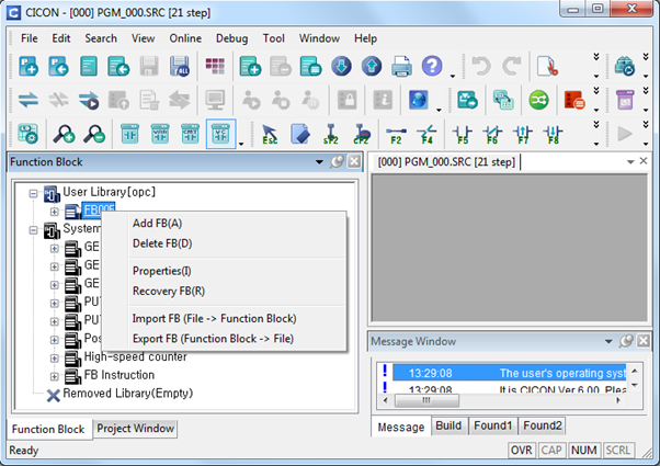 | Project | Maximum Registered Function Blocks | 128 | User Library | |