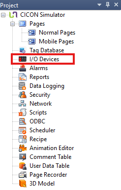 - In the Project window, left-click I/O Devices.
