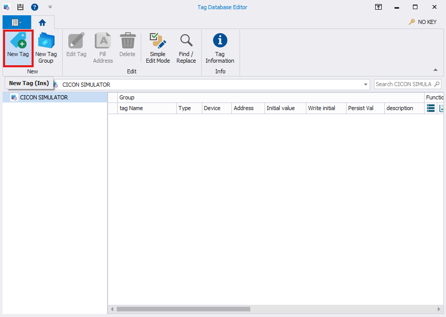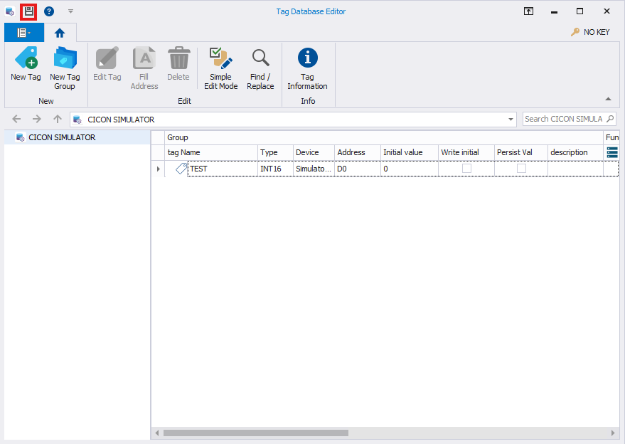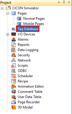 - In the Project window, left-click Tag Database.