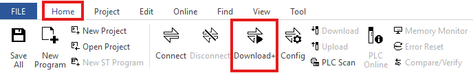 - Left-click Home and left-click Download +. This will download the scan program to the CICON Simulator.