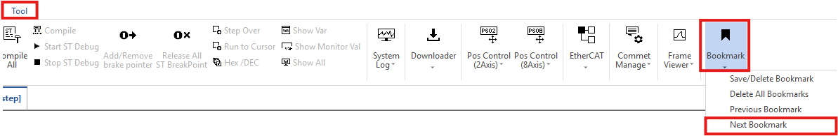 - To navigate to the next bookmark, left-click Tool, left-click Bookmark, and left-click Next Bookmark.