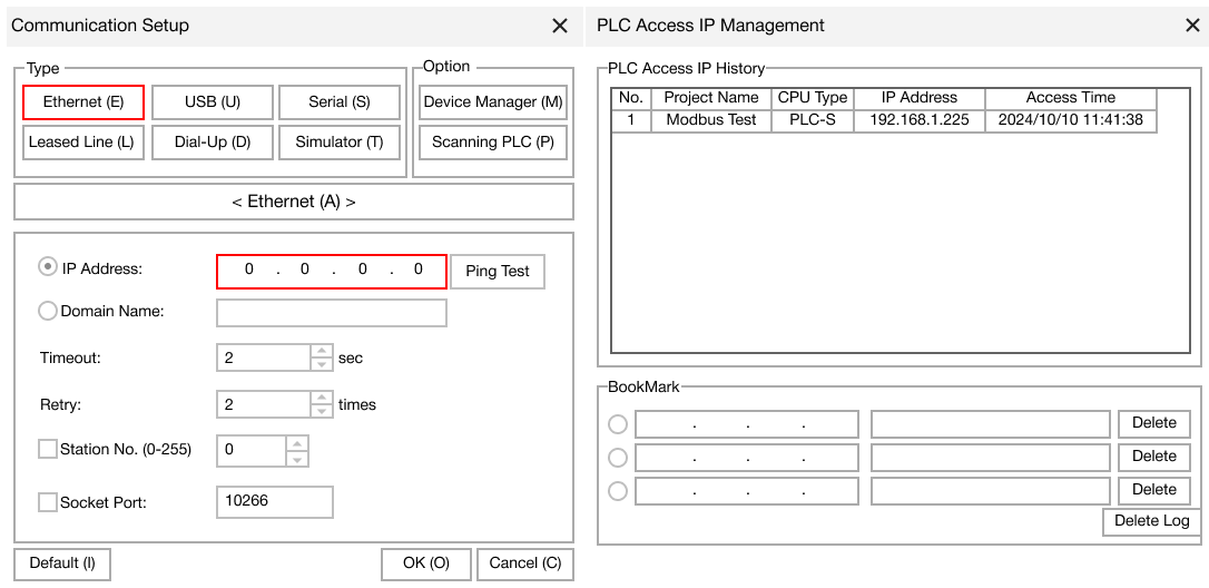 - Enter the IP address of the PLC. Ping the IP address if necessary.