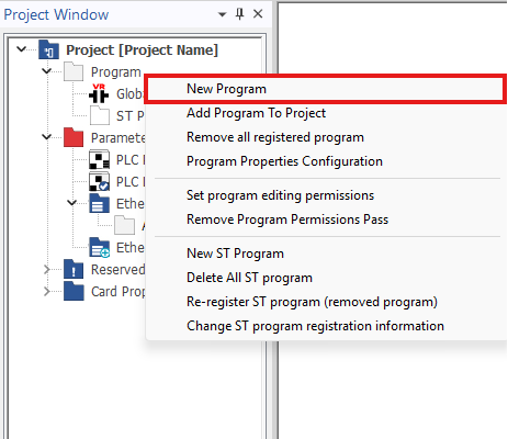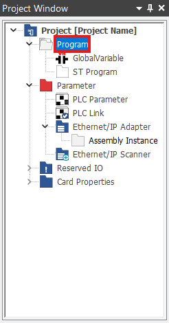 - In the Project Window, right-click Program.