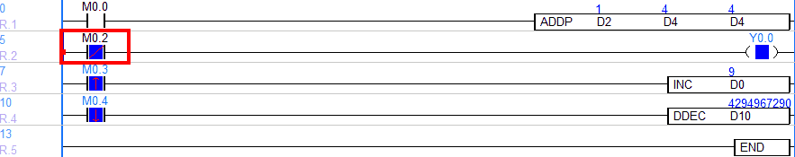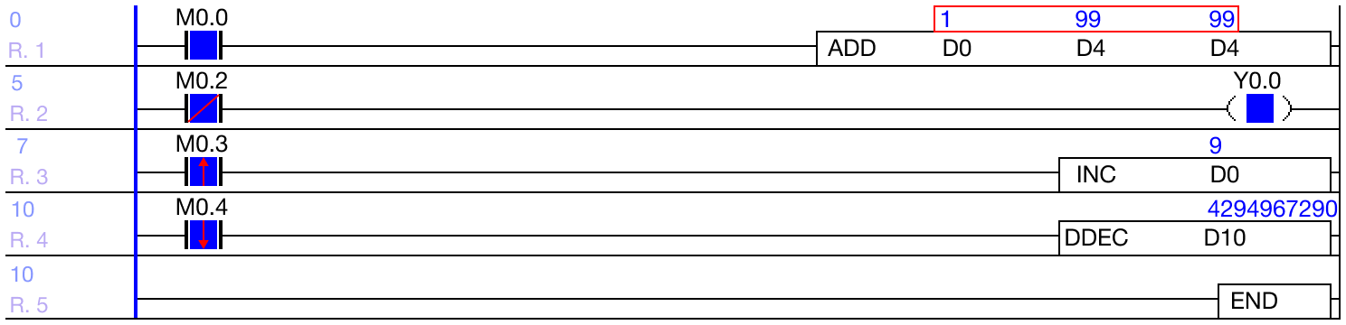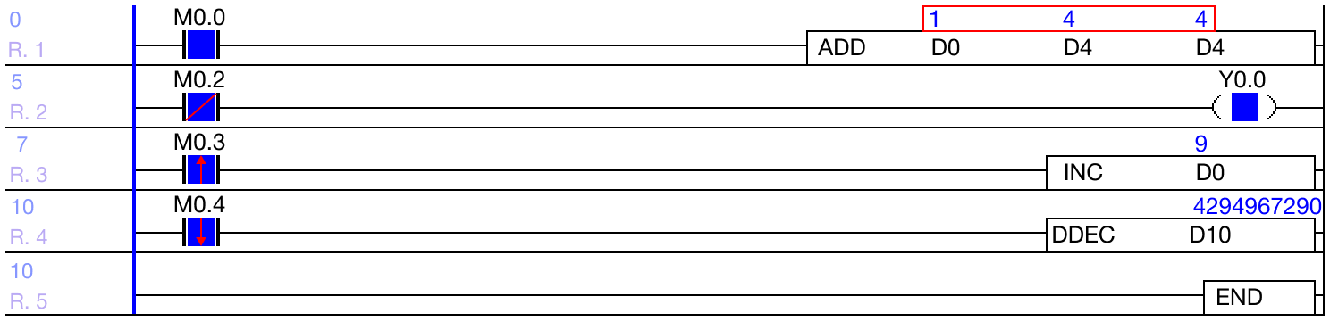- While the PLC is connected and running the current program, it is possible to interact with the contacts and instructions to change their values.
