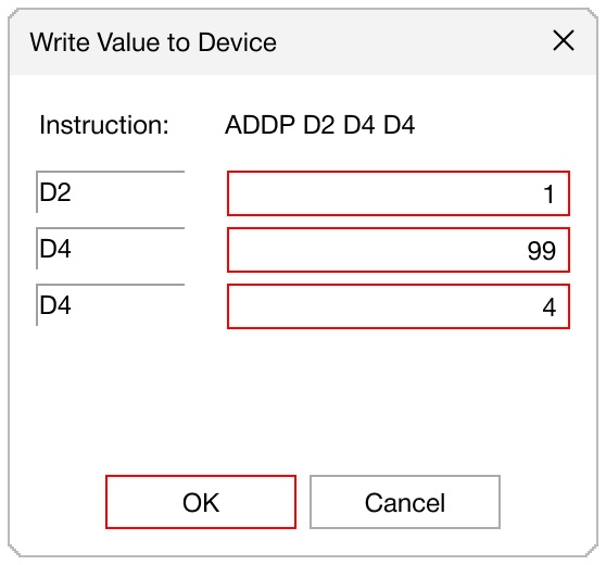 - To change the data register value, left-click the instruction with a data register and type SHIFT + ENTER.