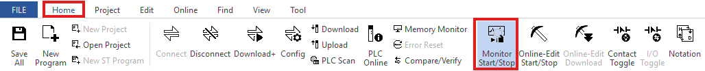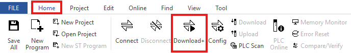 - When using the Download + option, the program will be downloaded to the PLC and program monitoring will be enabled by default.