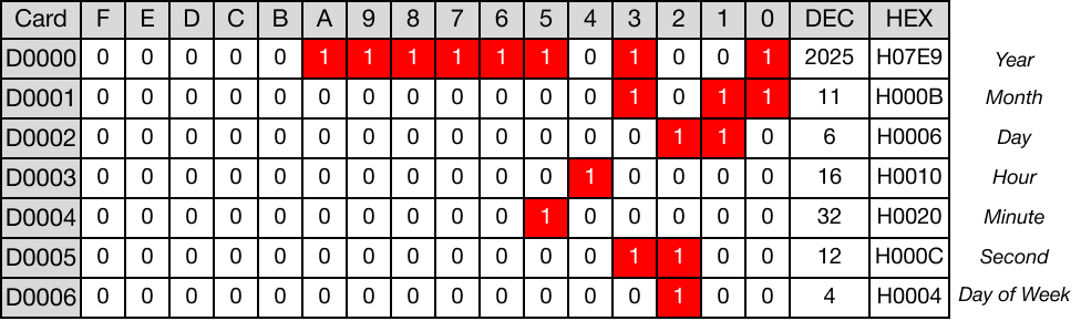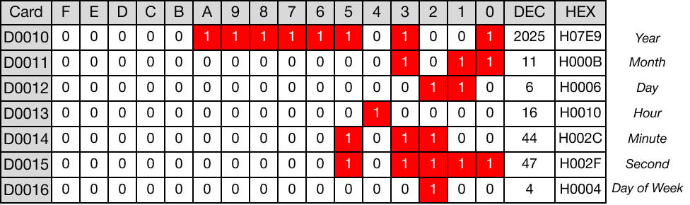 - The following data is saved into the data registers, D10, D11, D12, D13, D14, D15, and D16: