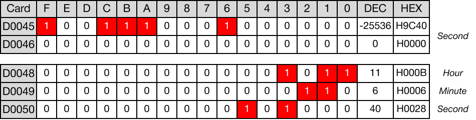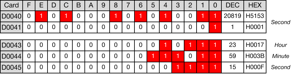 The result of the conversion is saved in the WORD date value data registers, D43, D44, and D45.
