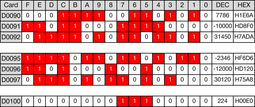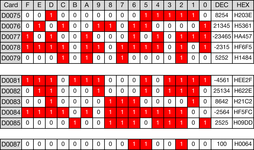 For each data register in the range S1 ~ Sn that is greater than each data register in the range S2 ~ Sn, the corresponding bit in the data register D, starting at bit number B, will turn ON (1).