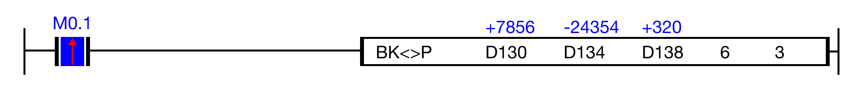 The BK<> instruction compares n number of WORD data registers starting at S1 to n number of WORD data registers starting at S2.