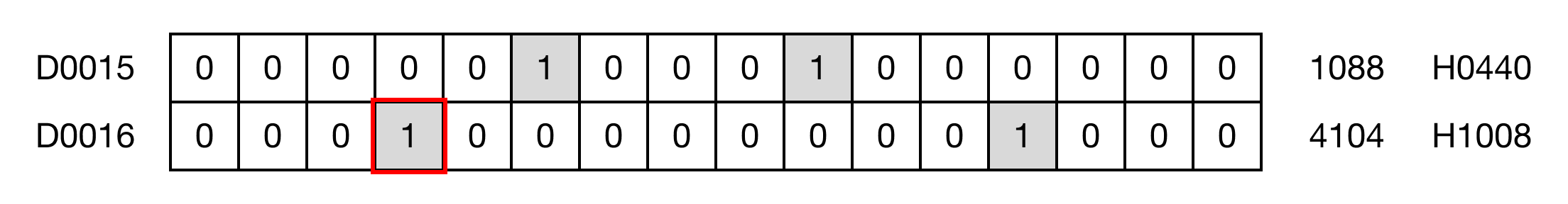 When the contact, M0.1 is ON (1), the instruction encodes 25 bits of the data register, D15, and stores the result in D18.