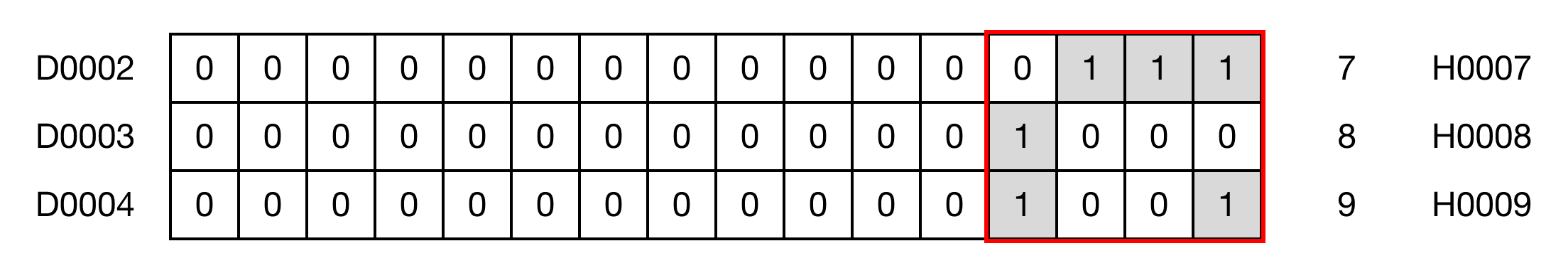 When the contact, M0.1 is ON (1), the instruction splits D5 into 4 NIBBLEs and distributes 3 NIBBLEs to D7, D8, and D9.