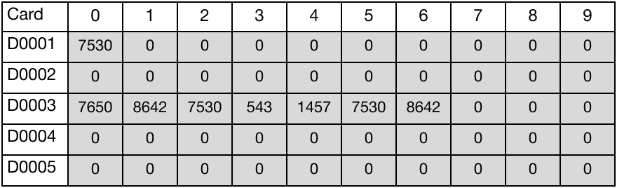The value 7,530 was found twice. This value is represented as 2, which is saved in the WORD data register, D51.
