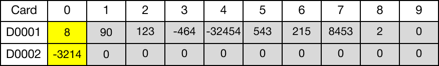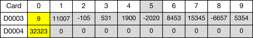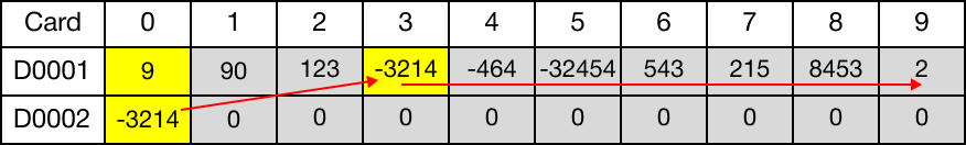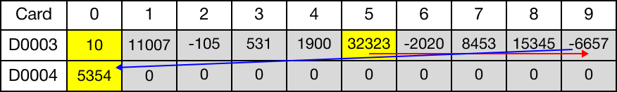 When the contact, M2.5, is powered ON (1), the FINS instruction inserts the value of the data register, D20, into the data register, D13.
