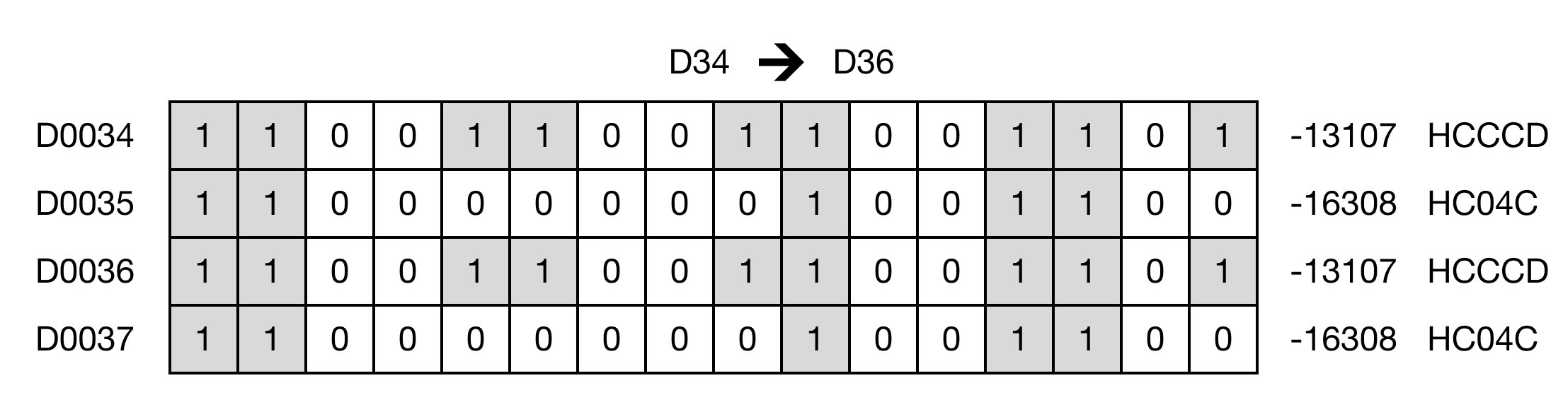 When the contact, M0.1, is powered ON (1), the instruction copies the value in the REAL data register, D34, into the data register, D36.