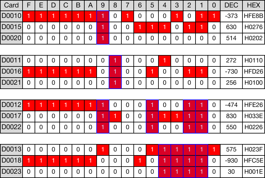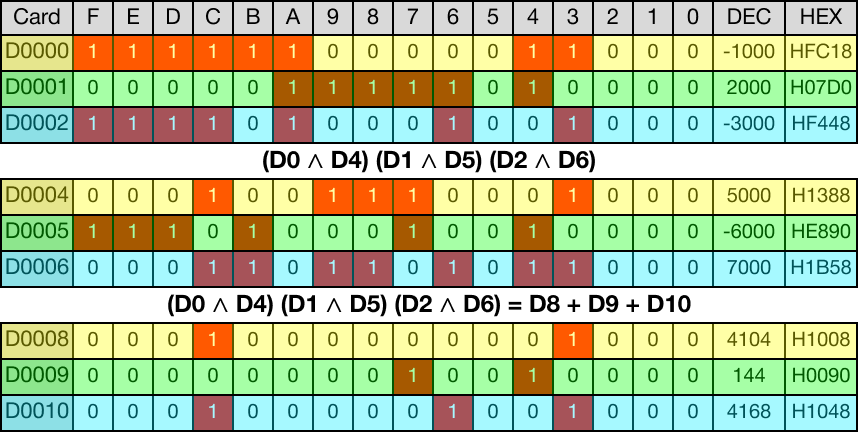 The results of the logical AND operations are saved in 3 WORD data registers, D8, D9, and D10.