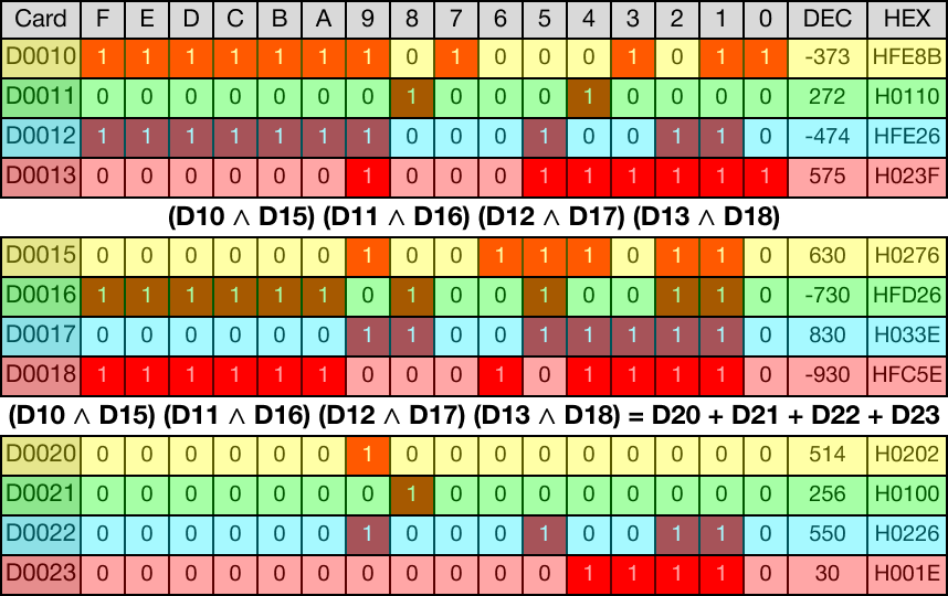The results of the logical AND operations are saved in 4 WORD data registers, D20, D21, D22, and D23.