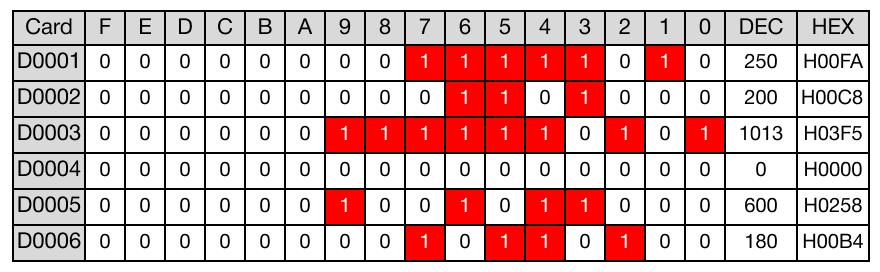 When the contact, M4.0, is powered ON (1), the data register, D5, is set to 600 and the data register, D6, is set to 180.