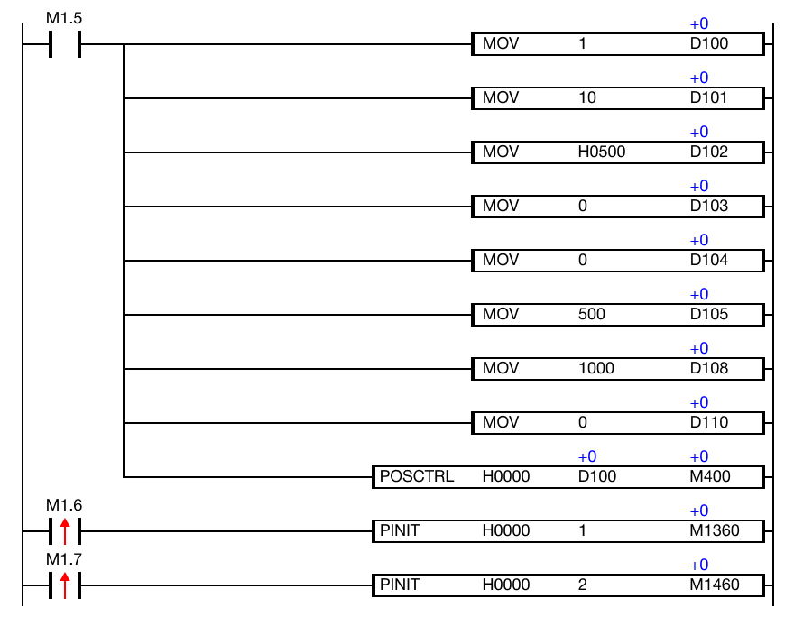 When the contact, M1.6 or M1.7, is powered ON (1), the PINIT instruction initializes the positioning data and/or parameters for flash memory.