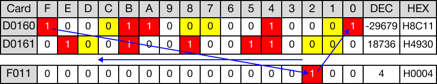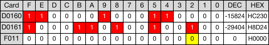 When the instruction is reenergized, the value of the DWORD data register, D160, changes from 1,764,102,530 to 1,227,918,353.