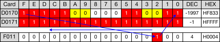 When the contact, M17.0, is powered ON (1), the DWORD data register, D170, rotates 2 bits to the left.
