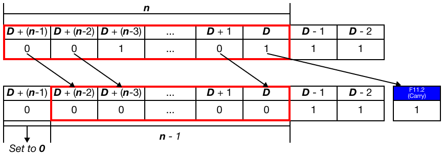 - n-bit data is shifted to the right starting at the BOOL data register, D.