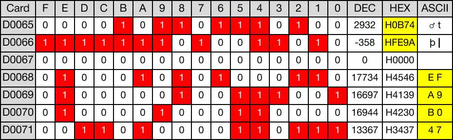 The result of the conversion is saved in four ASCII data registers, D68, D69, D70, and D71.