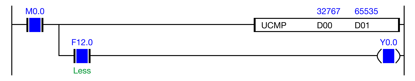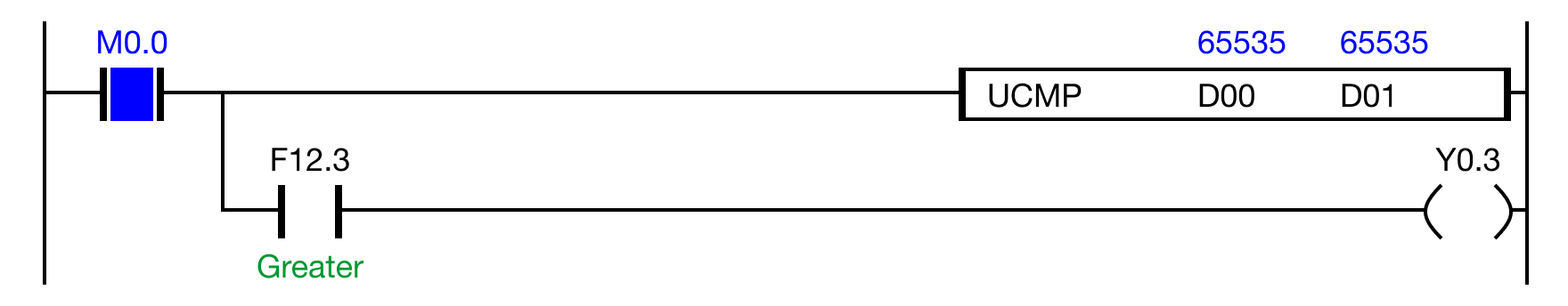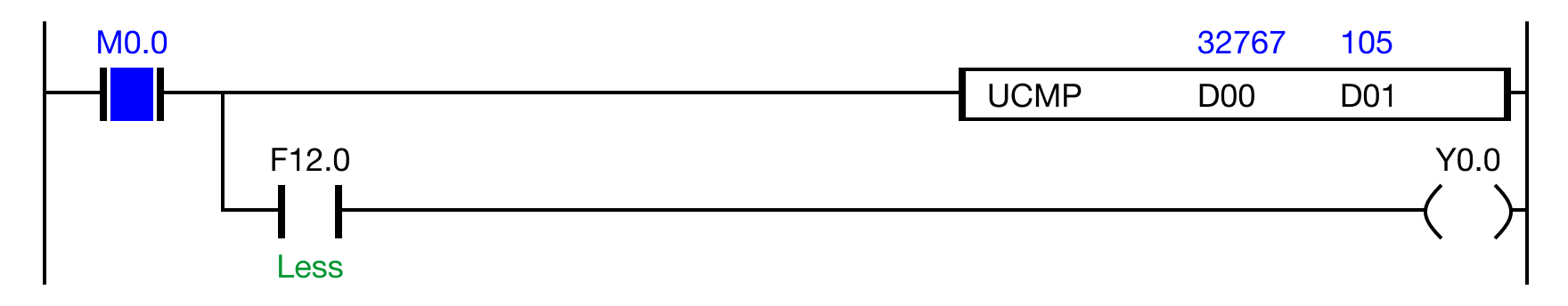 | F012.0 | Less Than (<) | ON (1) when the result of an unsigned comparison is less than | Used to evaluate conditions where one value is less than another |