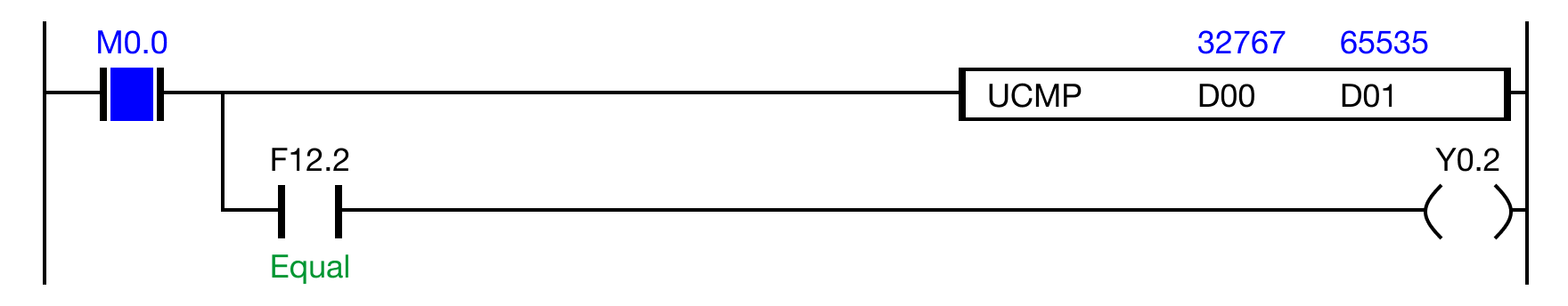 | F012.2 | Equal (=) | ON (1) when the result of an unsigned comparison is equal | Used to evaluate conditions where one value is equal to another |