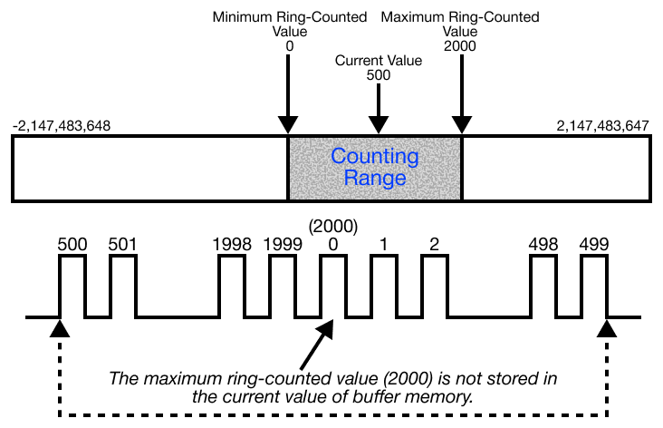 - Any value in the range -2,147,483,648 ~ 2,147,483,647 (232) can be ring-counted regardless of the current value.
