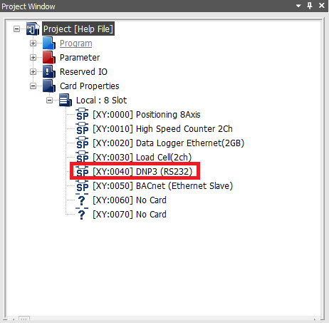 Navigate to Online → Special Module Setup → DNP3.0 (RS232C/422) or click on the DNP3.0 Serial module within the Card Properties.