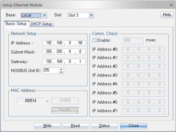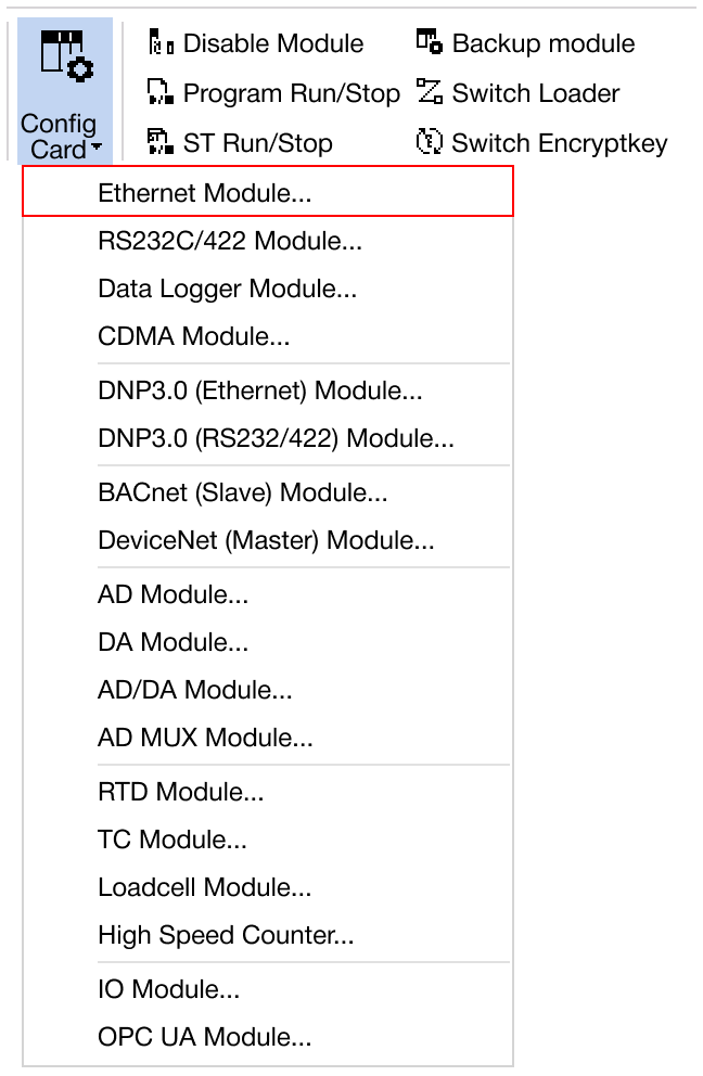 Navigate to Online → Special Module Setup → Ethernet Module or click on the Ethernet module within the Card Properties.