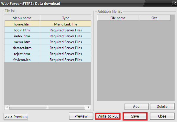 - The files on the left will be written to the SD card. Confirm that the SD card is inserted into the PLC-S CPU. Click Save.
