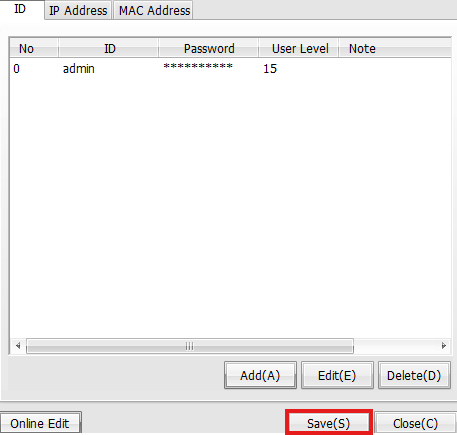 - Create a user ID, password, and user level. When finished, click Check ID to ensure the user ID is valid. If the success message says OK, click Add.