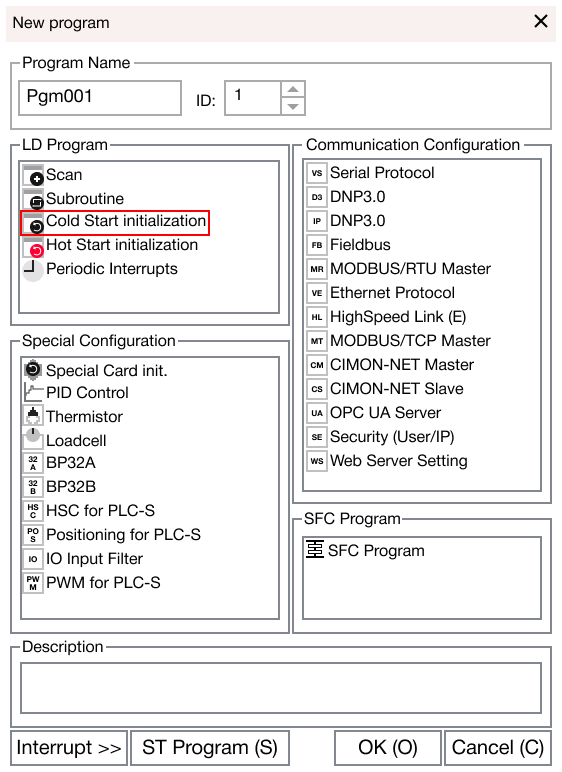 The cold start initialization program is executed when the CPU is powered ON or the CPU mode is switched from STOP to RUN. The scan program is executed after the cold start initialization program is complete. The cold start sets the initial data or initializes the peripheral and expansion modules to run in the scan program.