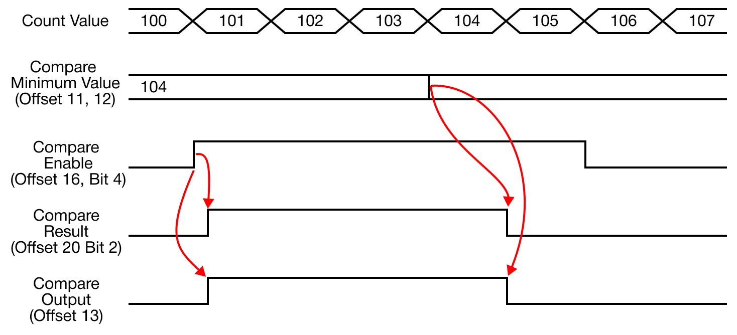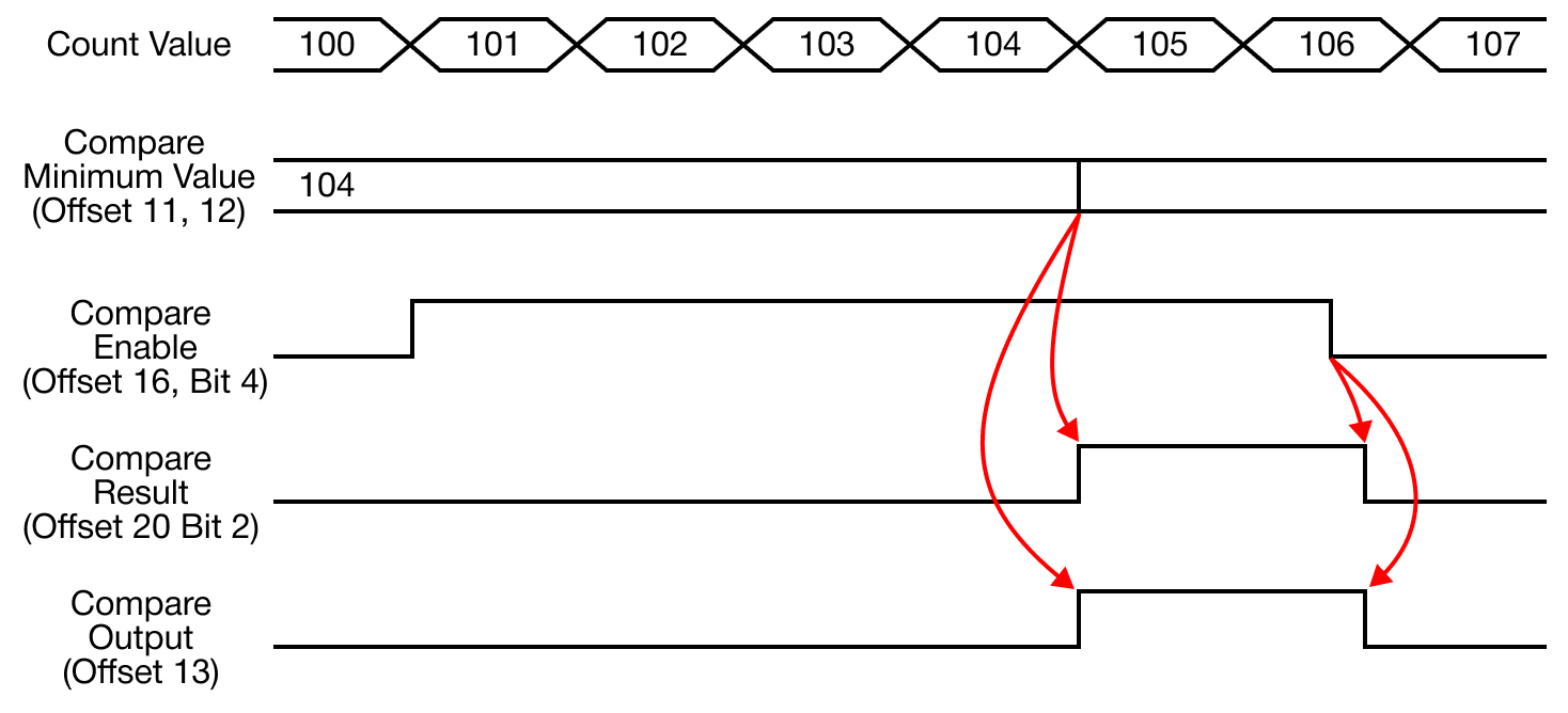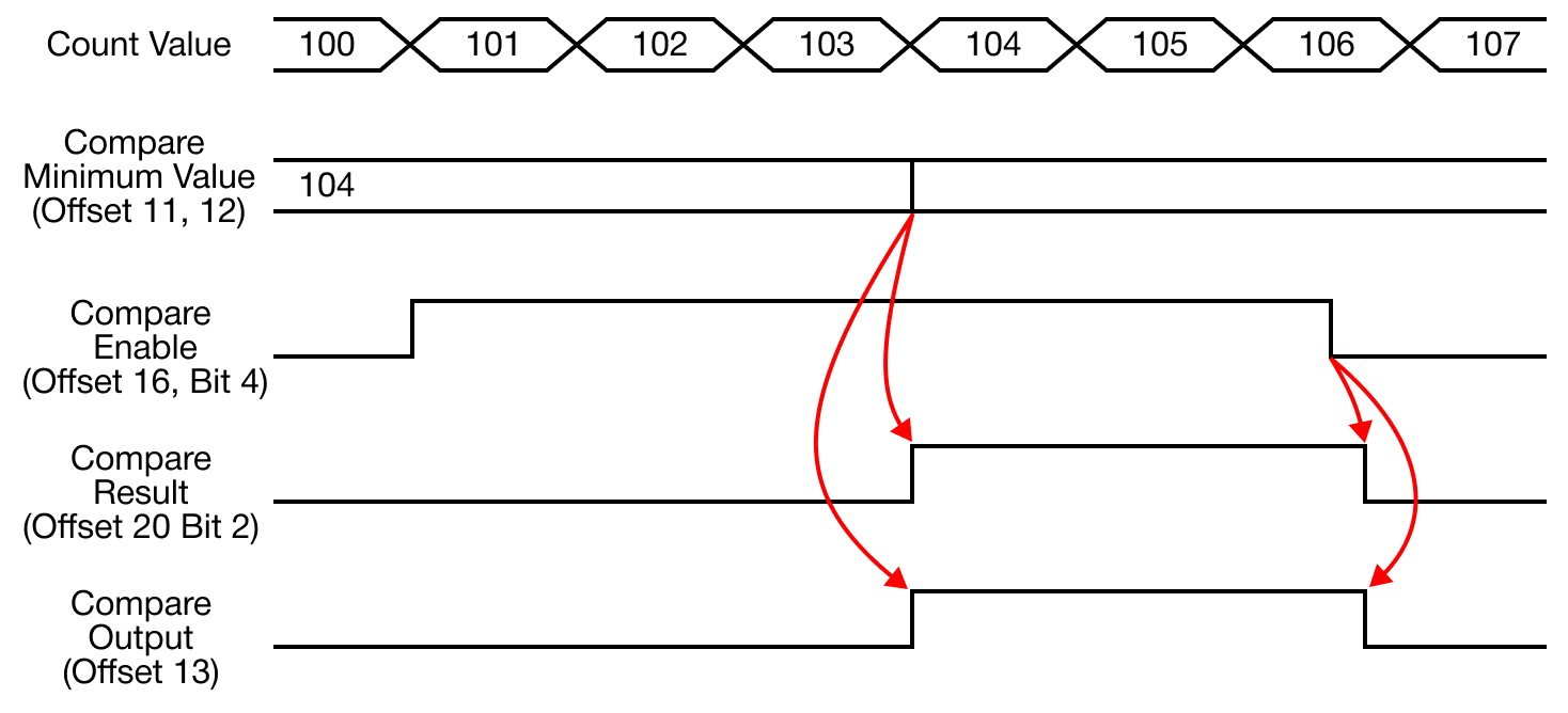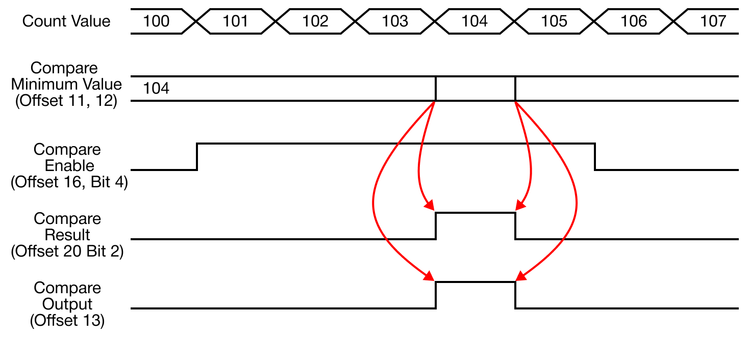 - The comparison operation with the currently-counted value is performed based on the configured comparison value.